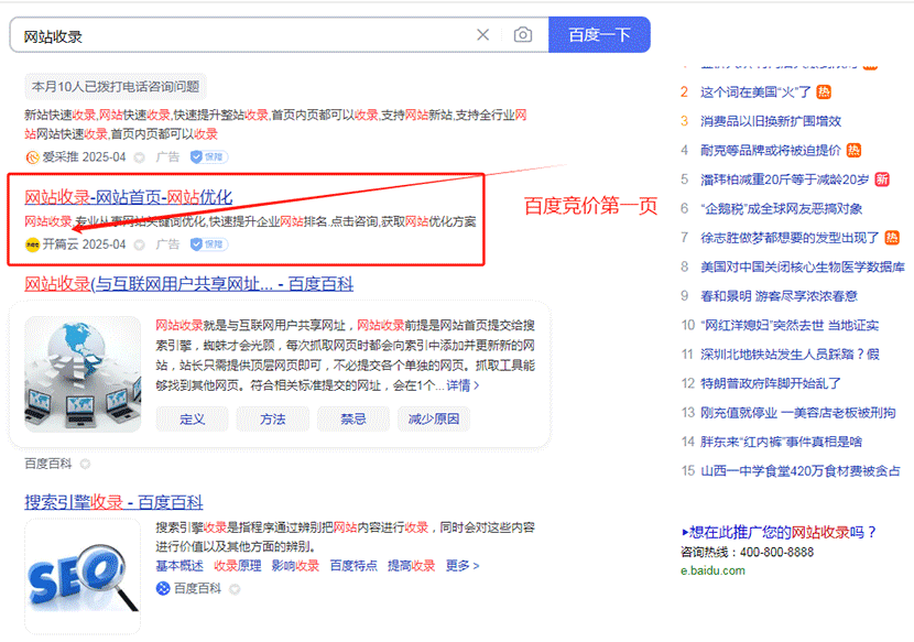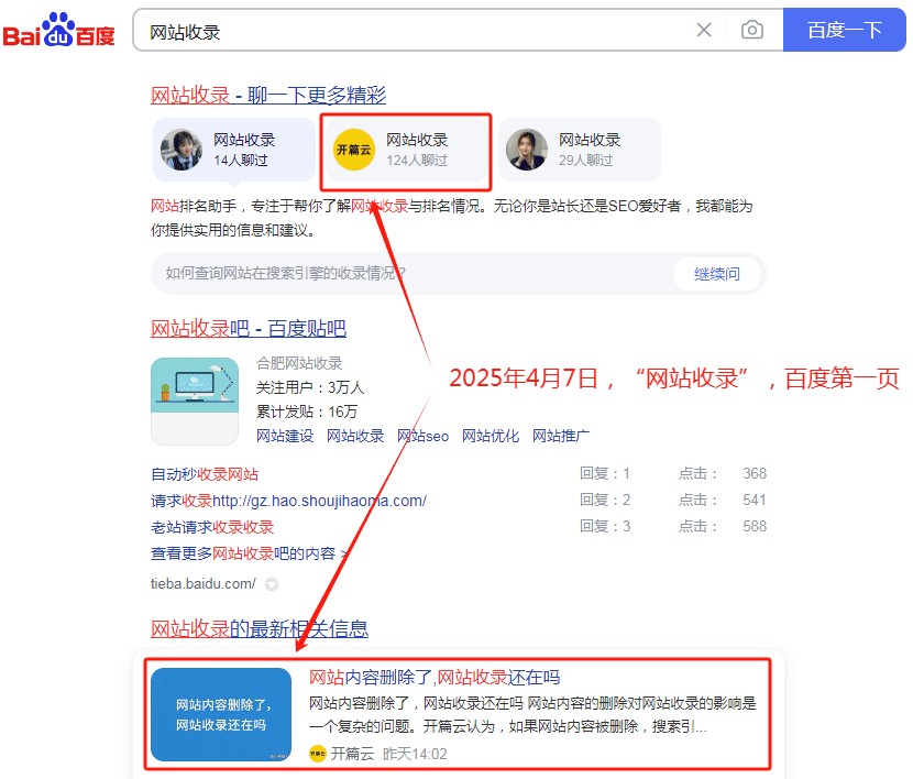 2025年4月7日,網站收錄排名百度第一頁,如果您有網站需要做網站收錄、百度收錄、360收錄,需要做SEO關鍵詞優化,百度SEO,360SEO,可以聯系開篇云。