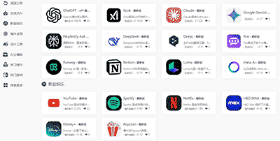 **導航網站AI工具與學習資源,分類清晰,內容豐富,覆蓋生成式AI、辦公輔助、設計開發、學習網站等多種場景。