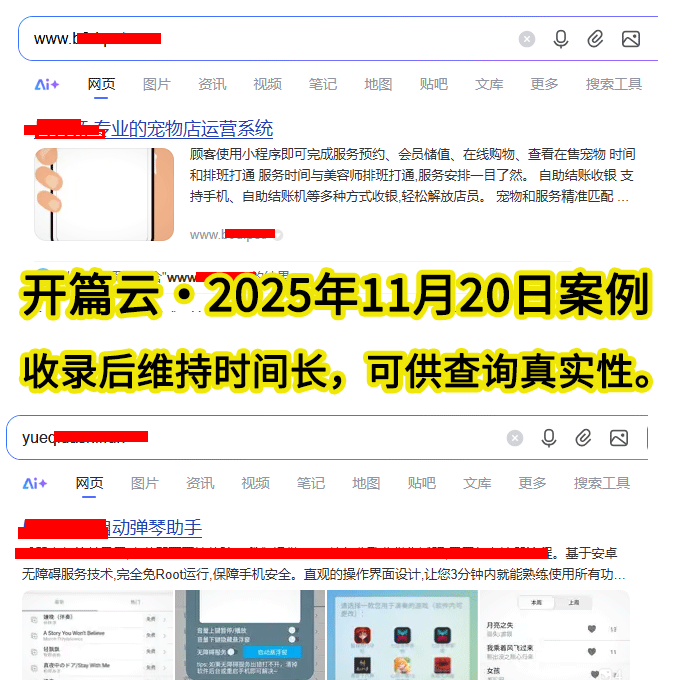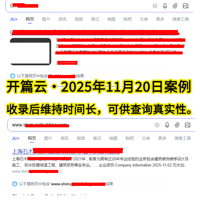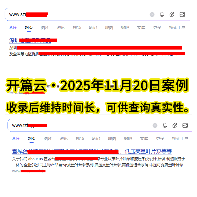 2025年11月20日,近期部分網站收錄成功案例展示。
